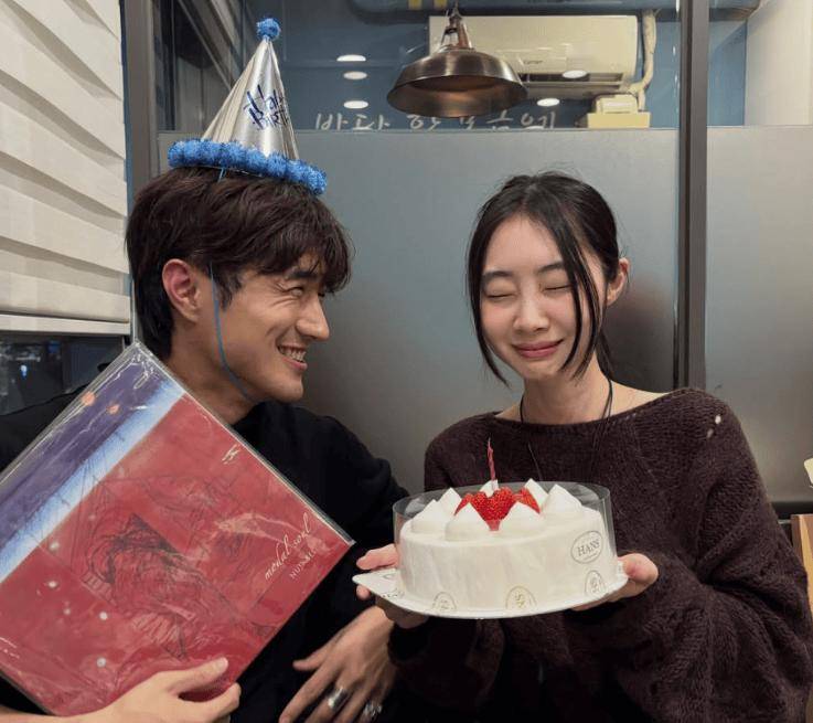 他们在韩国的小店为彼此庆祝生日,互送为对方买的礼物。