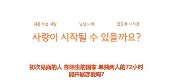 节目开篇就抛出问题: “两个初次见面的人,会在72小时的相处内,坠入爱河吗?”