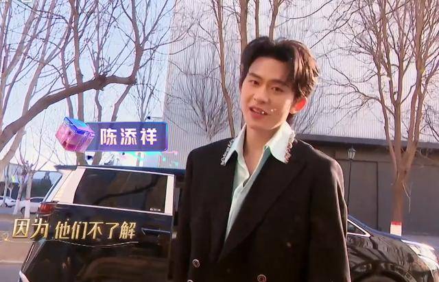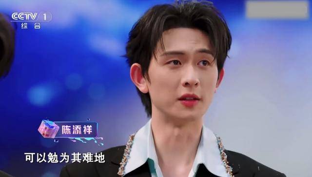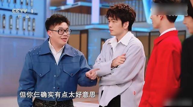 他穿着一身笔挺的西装登台,全程都端着霸总的架子,肢体动作僵硬,连微笑都显得很刻意,和舞台的轻松氛围格格不入。