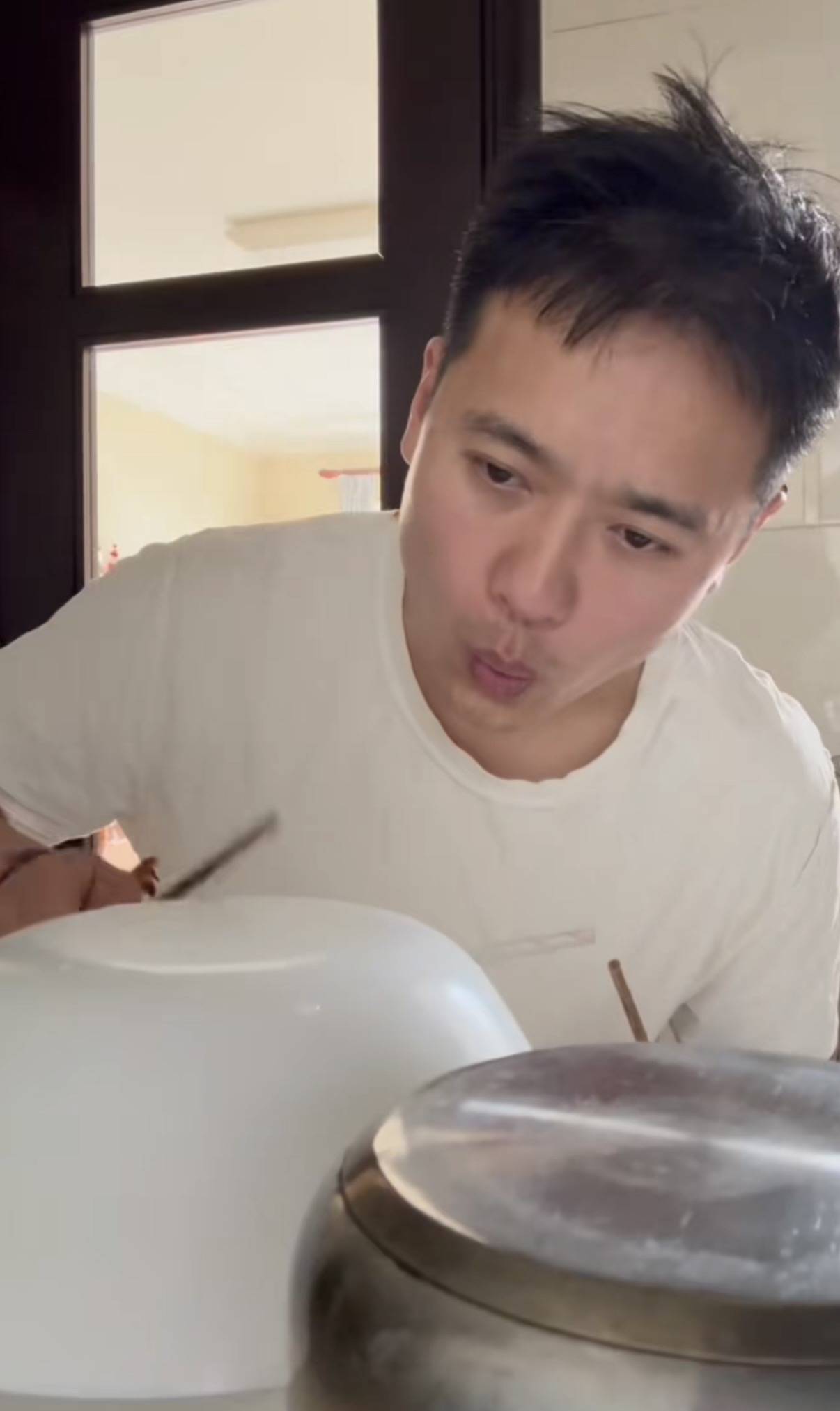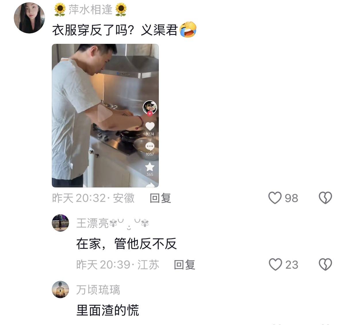 高云翔在家里真的是不修边幅,他不仅把T恤反着穿、头发也有些慵懒,像是刚睡醒没有整理发型一般。