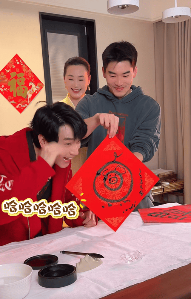 话说回来,上一秒还吐槽老婆福字写的不好的林依轮,再看他写的福字直接画了一个猪,对此西华宠溺地拍了一下他的脑袋。都50+的人还保持孩子心性的林依轮,一看就娶对了人。