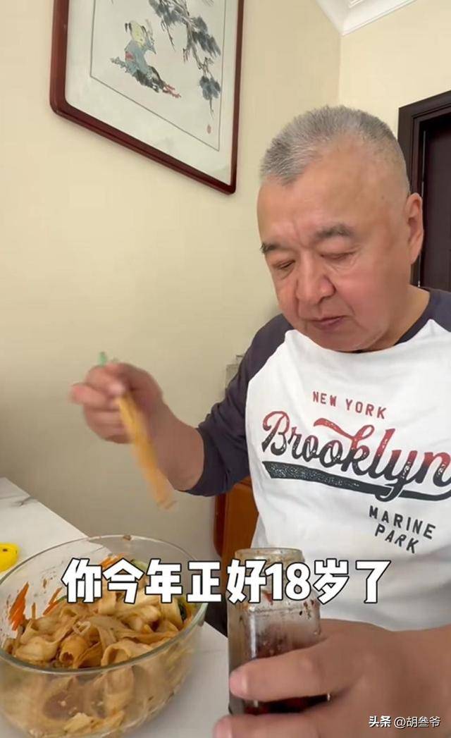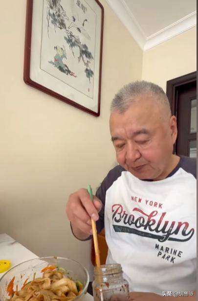只见他在厨房亲手给老爸煮长寿面,黄豆酱拌着豆芽、胡萝卜丝做的菜码,看着还挺有家常味。