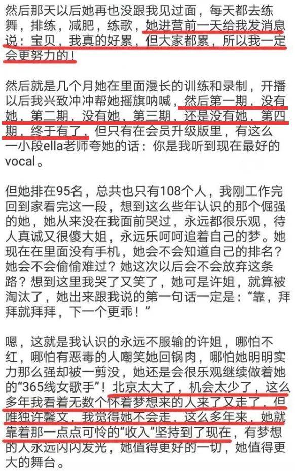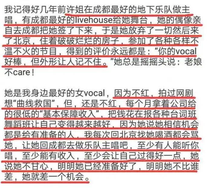 朋友发长文回忆过许馨文一路走来的辛酸,其中就提到过,许馨文得到的评价永远是:“你的vocal好棒,但外形让人记不住。”
