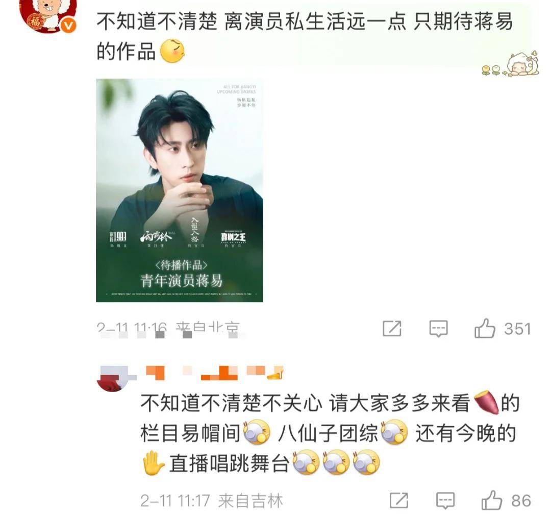 蒋易现在日子好到啥地步了呢,就是不仅参演了多部S+待播剧,甚至都有粉丝给他做控评图了……
