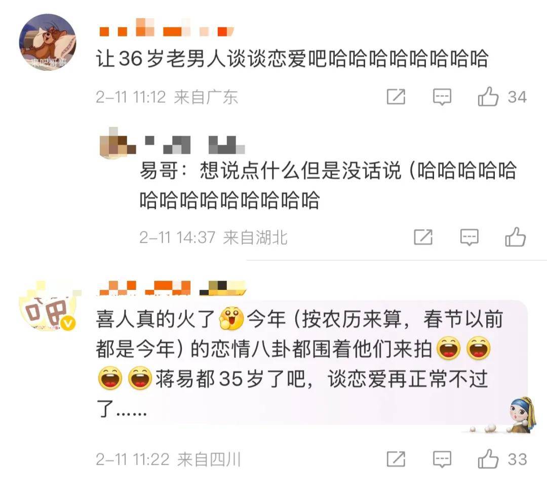 另一方面,《喜人2》的爆火、和孙天宇搭档的cp加成,都让蒋易的出圈程度上了一个台阶。
