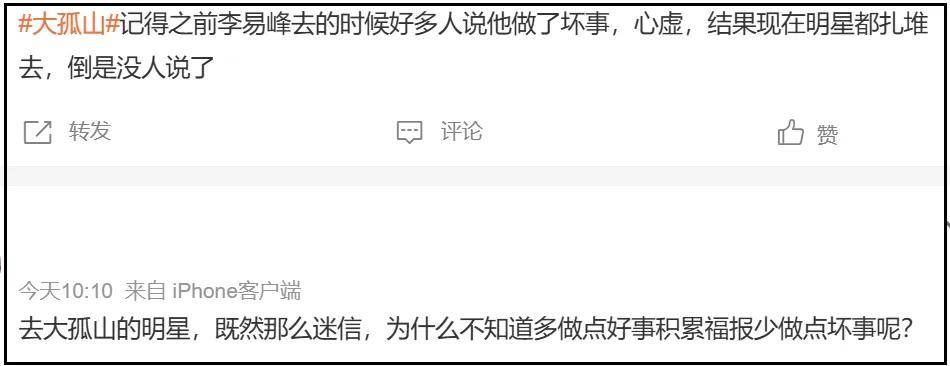 有人表示大孤山有大资本,明星纷纷前去拜码头;有人质疑内娱又要惹事了,去的明星不少都是资源咖。