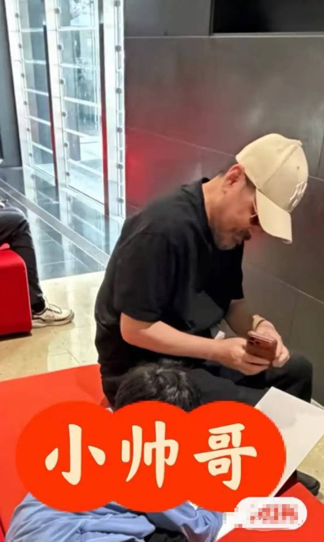 蒋勤勤的两个儿子也被拍了,大儿子穿着黑色T恤、正在低头玩手机,看模样和陈建斌更相似,很可惜没有遗传妈妈的颜值。