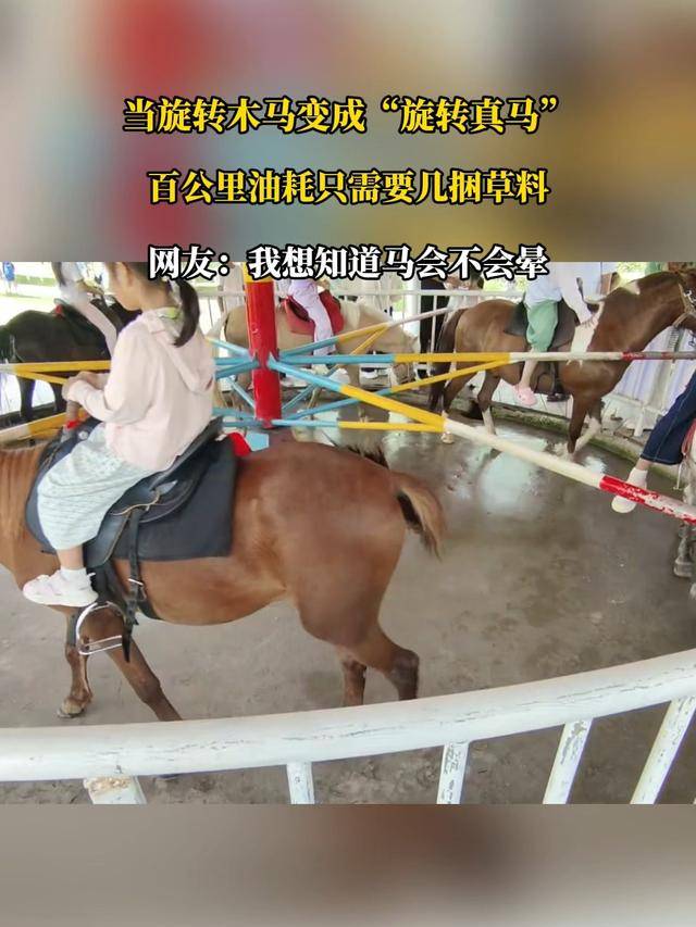 和塑料旋转木马不同,这里用的是6匹真马,本该闲置的马匹,有了一份安稳工作,既能发挥价值,也能获得照料。