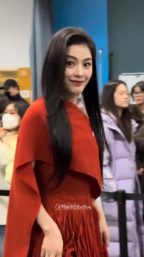 就说前几天的红毯造型,她穿一身红色皱褶流苏裙,利落又大气,黑长直发型衬得五官立体,话题直接冲上热搜,讨论量破亿。