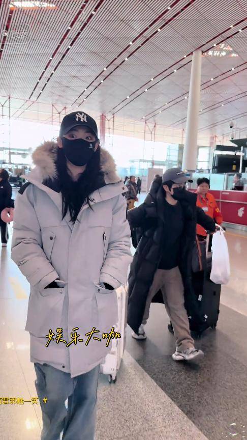 前几天还在红毯上穿红裙气场全开,转头现身机场,就裹着大棉袄双手插兜,连妆都没化。