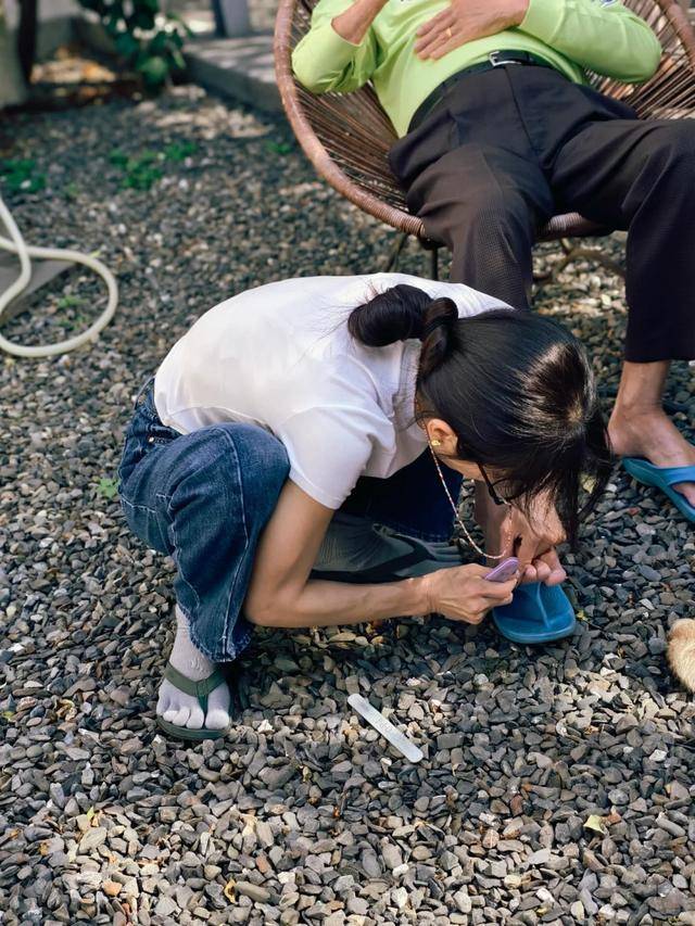 最戳人的画面,是她蹲在地上,低着头小心翼翼地给父母剪脚指甲,没有偶像包袱蹲在了地上,眼睛都快贴到父母的脚面了,一想到她顶着老花眼还这么贴心,不仅觉得有些好笑也有些感动。