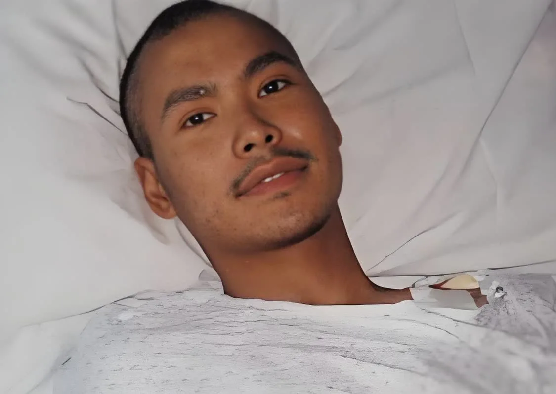 母亲匆忙赶到时,看到的是头发掉光、瘦骨嶙峋的儿子。