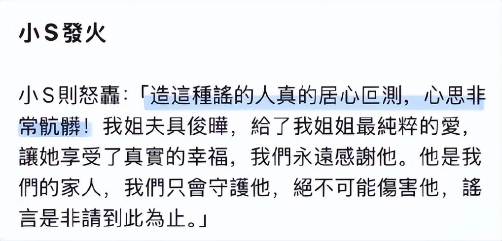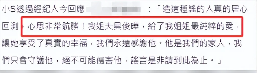 小S第一时间通过经纪人怒斥造谣者并直言会永远守护具俊晔。