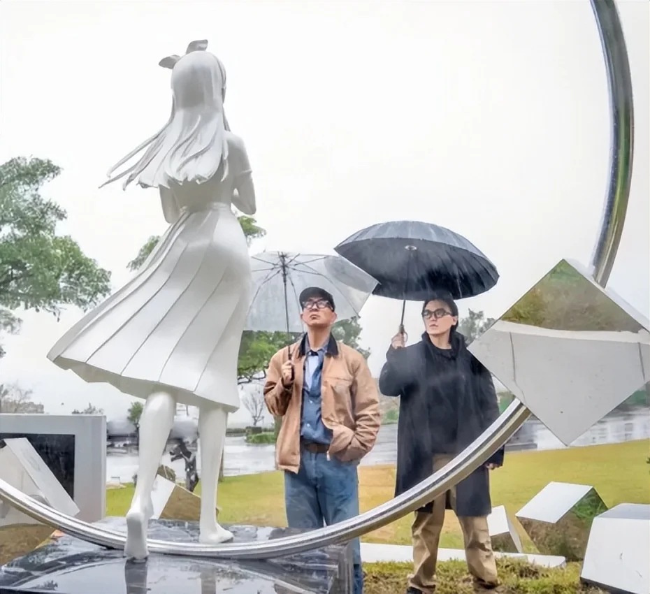 他用一年时间为大S打造纪念雕像,雕像旁的九层台阶和九面白墙都做成S形,韩语中“九”与“具”同音,藏着他对大S至死不渝的爱意。