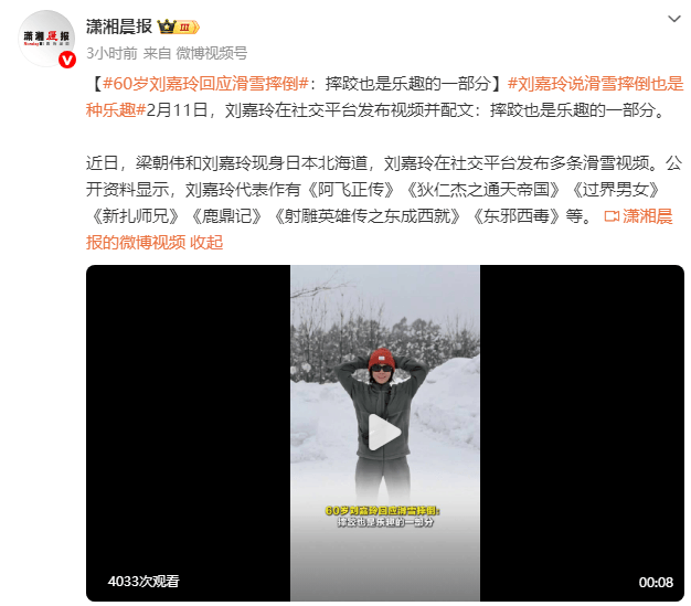 (来源:潇湘晨报)2月11日,60岁刘嘉玲在社交平台发布视频并配文:“摔跤也是乐趣的一部分。”近日,梁朝伟和刘嘉玲现身日本北海道,刘嘉玲在社交平台发布多条滑雪视频。公开