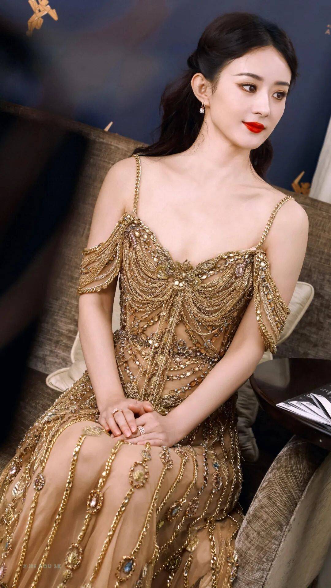 赵丽颖身为当红女星,走红毯和拍摄写真,经常走性感路线。她穿着鎏金吊带衣裙,露出白皙的香肩和事业线,曼妙身材曲线,绝对性感撩人!