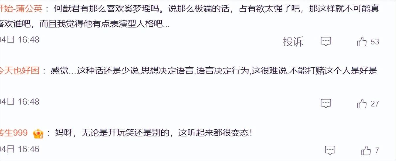 何猷君上节目后暴露出自己幼稚欠揍的一面,网友都难以想象,奚梦瑶和他相处这么多年,受了多少委屈。