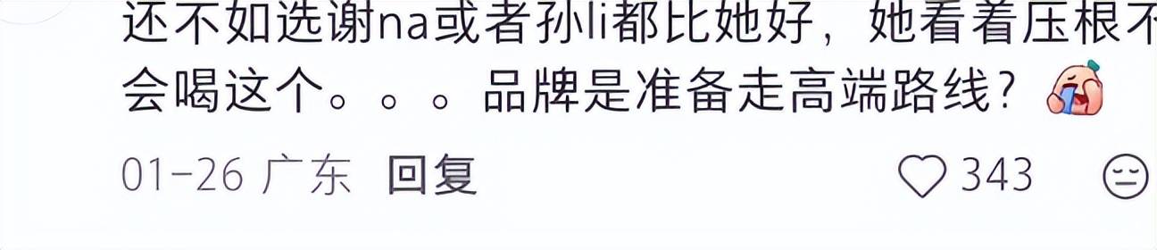 她代言的奶粉遭到了不少网友的吐槽,说她一看就不会让宝宝喝这些市面上的奶粉牌子,感觉品牌选她根本起不到带货的作用,还有点儿微妙的悬浮。