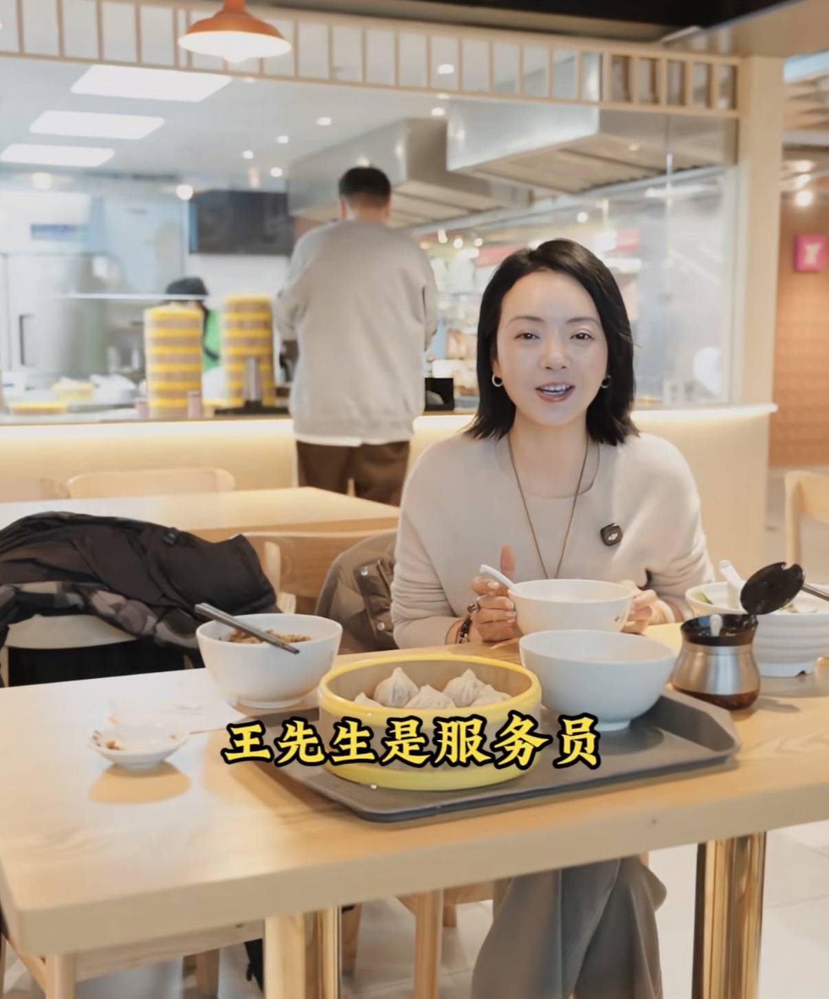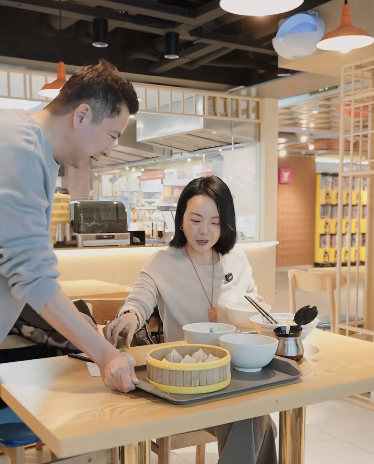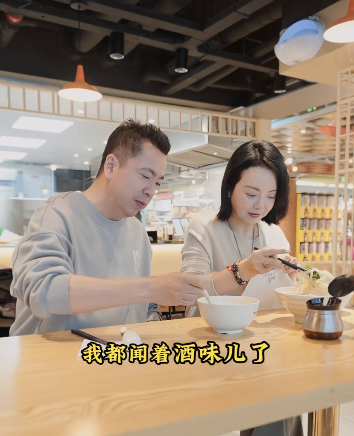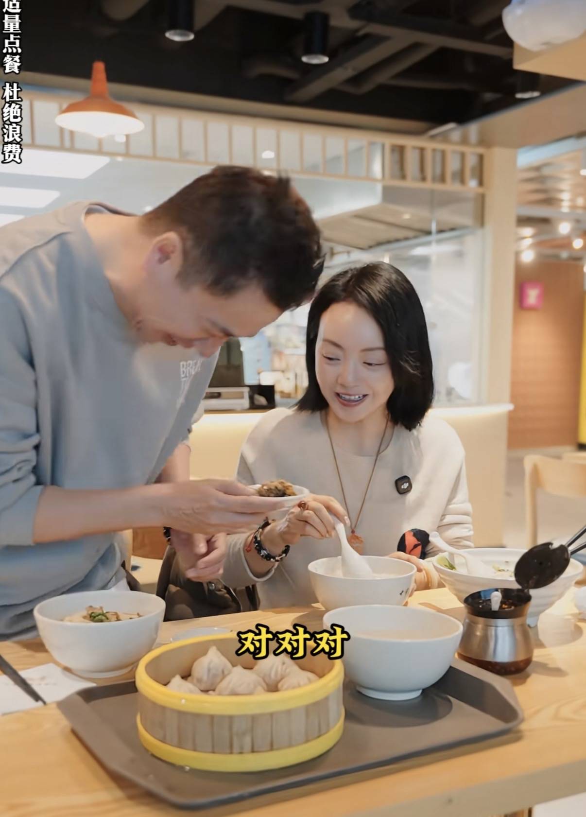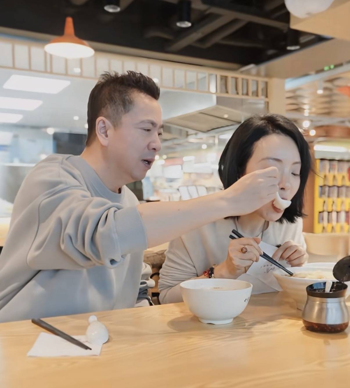 在整个就餐的过程中,夫妻俩相处的也特别和谐。甚至王晓蓉还称呼王中磊先生为服务员,亲自给老婆取餐,好贴心。