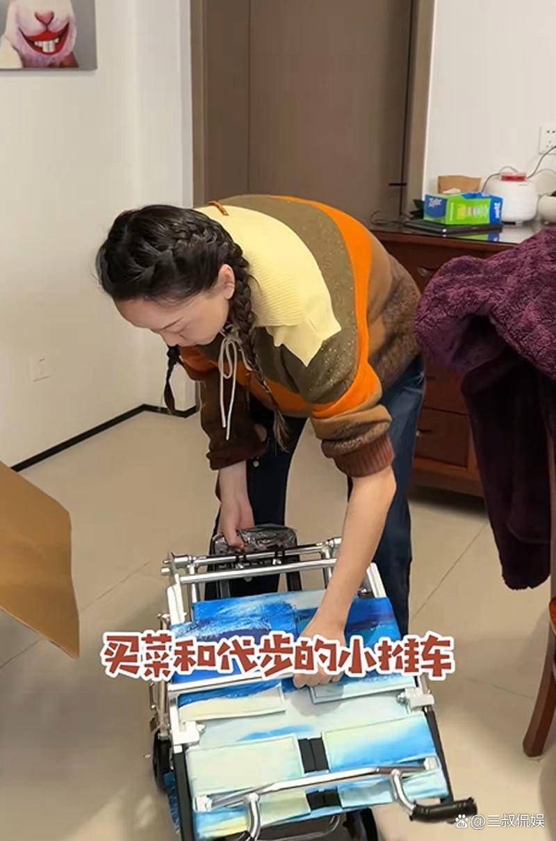 王一楠还贴心地为母亲准备了可以坐的买菜的小推车。