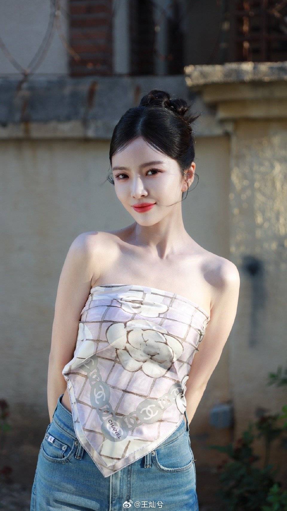 夏露素颜是真的好美啊!用丝巾来当抹胸超级的美,之前就看杜淳的老婆王灿这么穿搭过,觉得很美,没想到夏露穿着更有韵味,大波浪卷唇红齿白的,一对耳环也很加分啊!穿着一身黑更显皮肤白了。