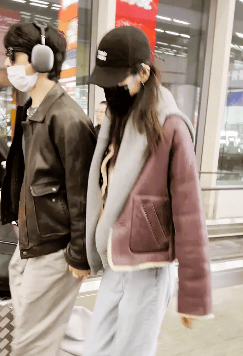 当天虹桥机场进出港航班量超600架次,人流量密集,井柏然率先走出出口,身着咖色皮质夹克,内搭浅灰色卫衣,下身搭配同色系休闲裤,推着一只20英寸黑色登机箱,黑色棒球帽、黑框眼镜与白色口罩层层遮挡,仅露出一小部分眉眼,却难掩沉稳气场。身后几步远的刘雯,身着棕色皮衣搭配蓝色牛仔裤,白色运动鞋简约清爽,178厘米的身高即便刻意压低步伐,在人群中依旧十分显眼,同样的遮脸装备,与井柏然的穿搭形成巧妙的同色系呼应。