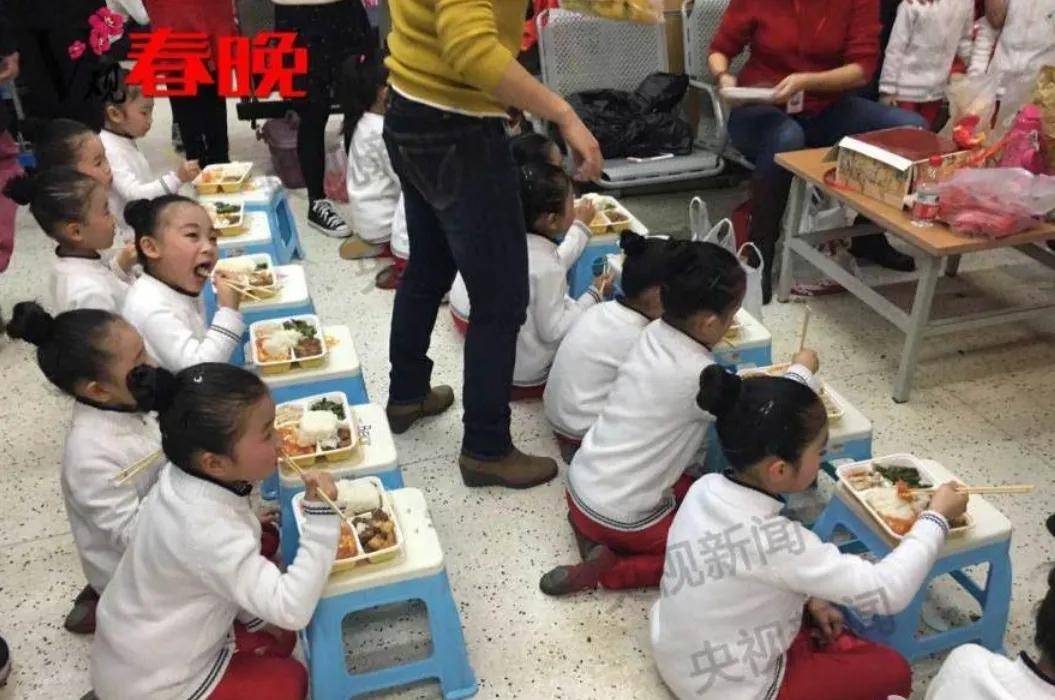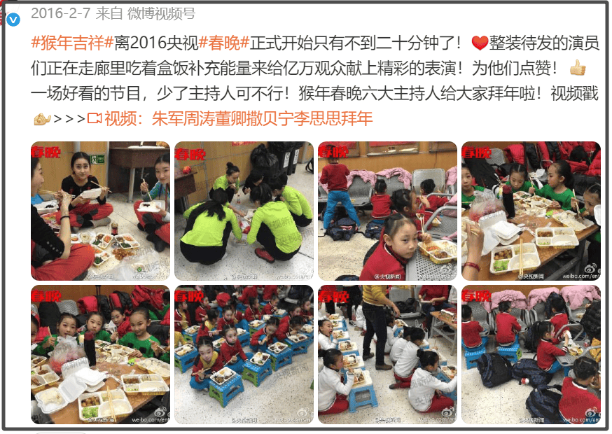 儿童群演也是如此,早年春晚还有后台群演吃盒饭的专门报道,小演员都坐在地上吃饭