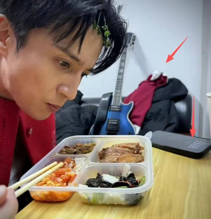 薛之谦快到半夜11点了,才吃饭。发型用夹子固定,衣服扔在旁边沙发上,盒饭也是家常样式。薛之谦的肉菜没怎么动,用西红柿炒蛋拌饭就吃了这一餐。