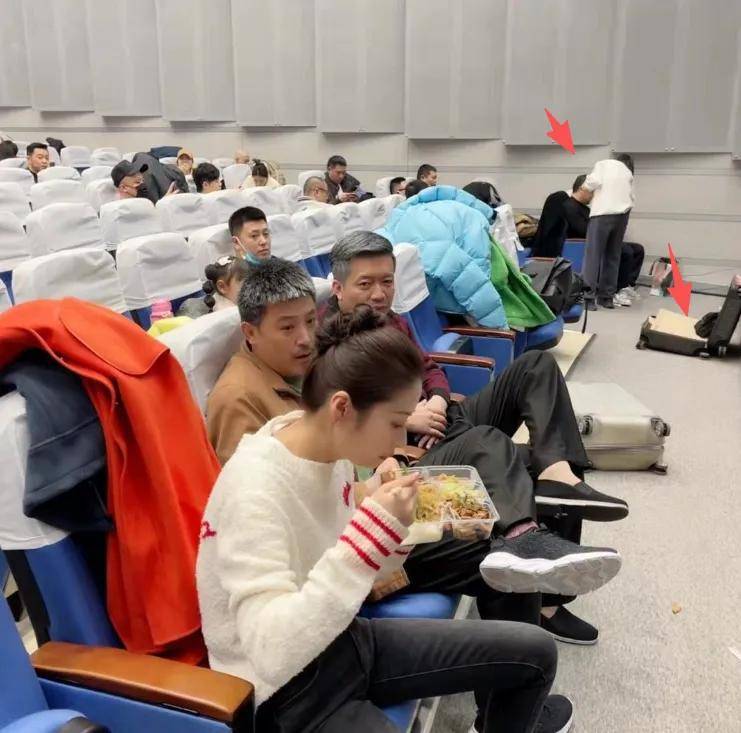 就连明星也不一定有自己单独的休息室,但比群演的待遇还是好很多的。此前颖儿就晒出过除夕当晚明星候场的照片,看着像是在某个阶梯会议室里。地上有敞开的行李箱,有人玩手机,有人做妆发,有人吃饭,各忙各的。