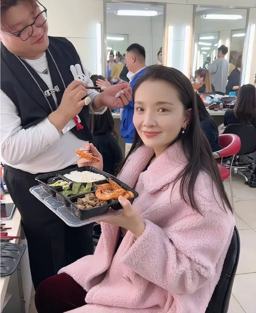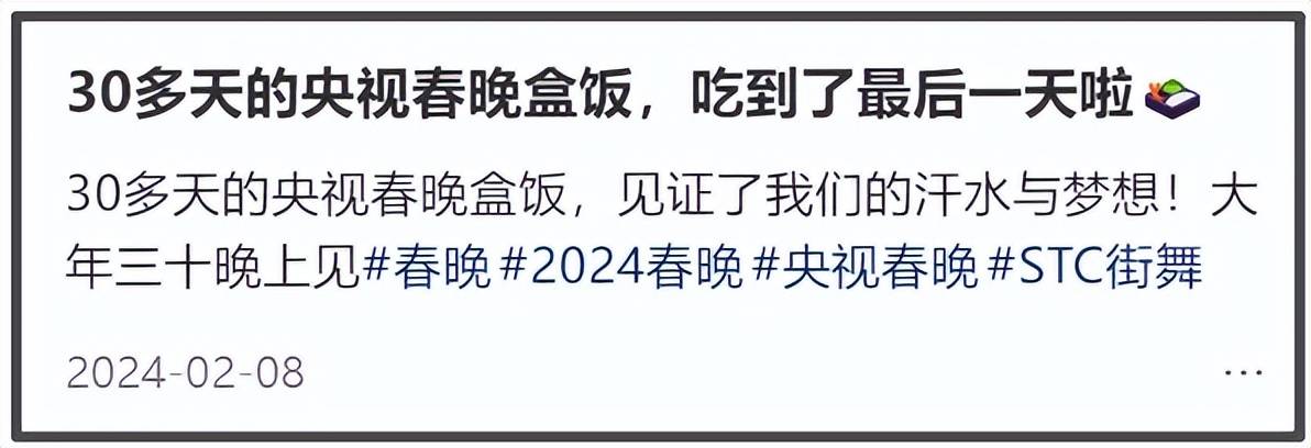 央视春晚的盒饭“硬菜”还是比较多的,2023年的时候,演员孙茜就边化妆边吃饭,还晒出了吃盒饭的照片。