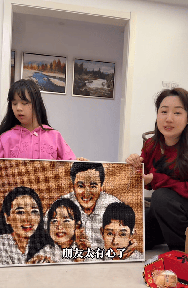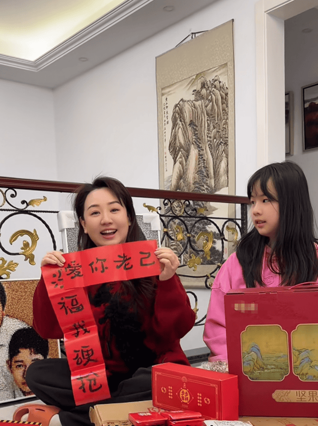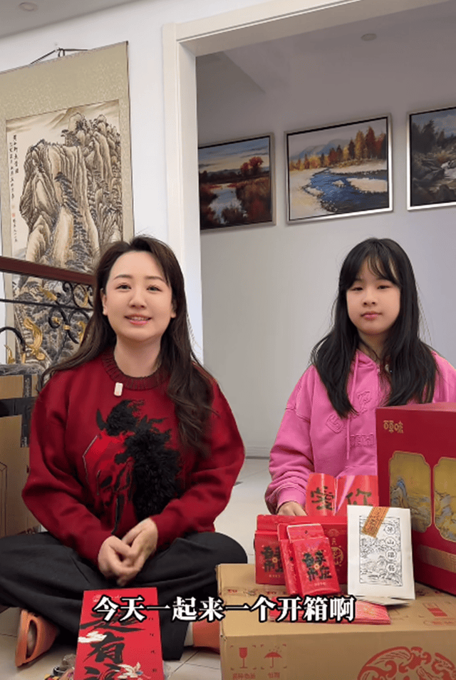 关凌母女身前摆放了超多礼盒,以至于母女俩只能坐在走廊拆礼物。虽说关凌只晒出家中一角,但不难看出关凌一家四口在北京住的是别墅,别墅靠近楼梯的那面墙上挂着一幅竖幅的中国传统山水画,画作以水墨为主色调,描绘了山峦叠嶂、树木葱郁的景象,笔触苍劲有力,透露出浓厚的文人气息和古典韵味。