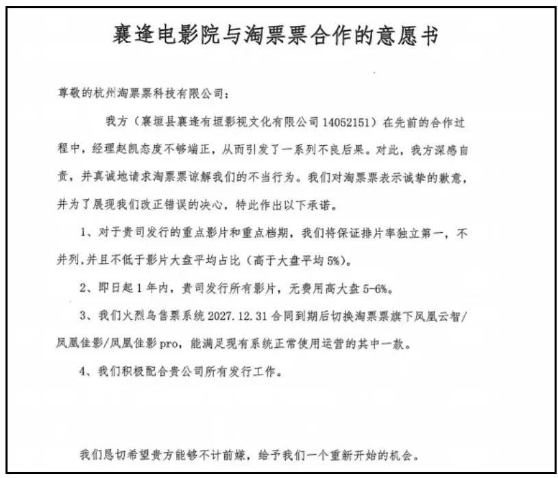 无奈之下,影院负责人步步退让,写了一封又一封意愿书,一遍遍道歉、恳求,承诺一定会保证排片,都没能得到回应,《惊蛰无声》成了压死小影院的最后一根稻草。
