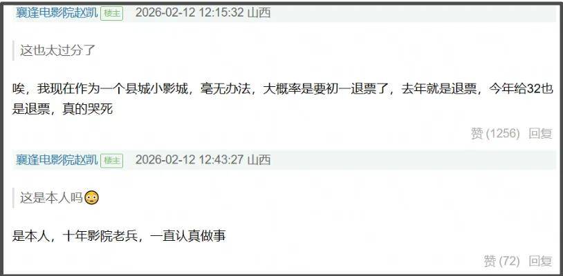 出面发声的当事人是一位十年从业者,他是一家县城影院的负责人,从2025年开始,他负责的影院连续两年被春节档电影发行方干扰排片——2025年是《封神2》,2026年是《惊蛰无声》。