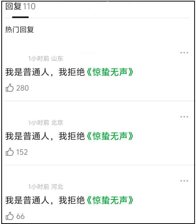 偏偏这时候还有影院站出来控诉《惊蛰无声》发行方干扰排片,随着影院当事人出面发声,已经有网友表示要抵制《惊蛰无声》,一条“我是普通人,我拒绝《惊蛰无声》”的帖子引发上百位网友跟帖。