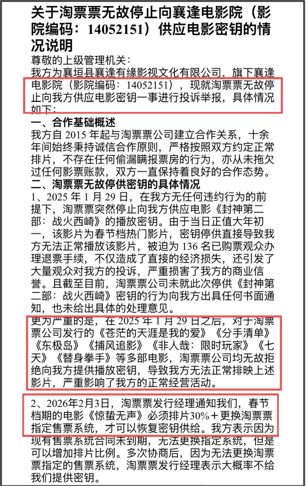 第二张摇摇欲坠的牌,是一家县城影院的负责人出面控诉《惊蛰无声》发行方干扰排片;