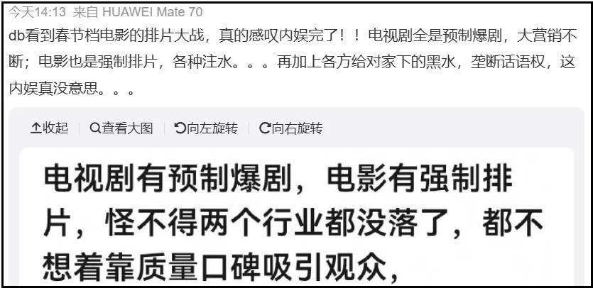 只是易烊千玺卷入的排片风波,网友落点并不在“内娱完了”,这事念叨好几年了,完了就完了吧,完了就走开!