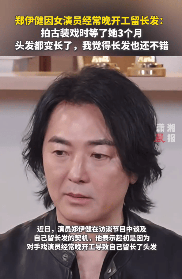 (来源:潇湘晨报)近日,演员郑伊健在访谈节目中谈及自己留长发的契机,他表示起初是因为对手戏女演员经常晚开工导致自己留长了头发,“拍古装戏时等了她3个月,头发都变长了&rdqu