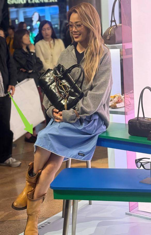 和舞台上穿着华丽礼服、全程气场拉满的港乐天后不同,这次现身miumiu活动的她,穿搭偏向简约休闲,却依旧难掩出众的气质。