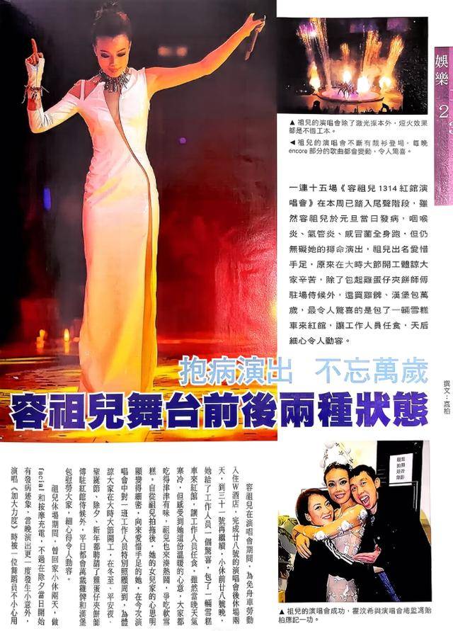 她是出了名的“拼命三娘”,一年开几十场演唱会是常事,跳到膝盖积水、嗓子哑了打封闭也要登台演唱,这种对舞台的敬畏和执着,是港娱黄金时代留给她的烙印。