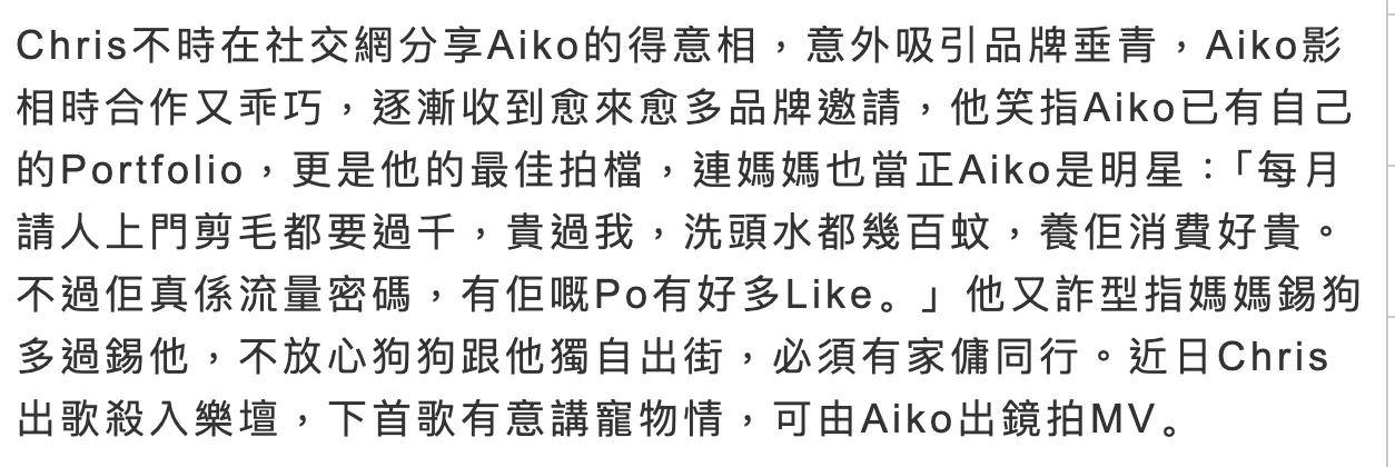 姜坤一个人生活,只有狗相伴,自然就把感情寄托都放在现养的贵宾狗身上。姜坤的儿子汤君耀称,母亲如今宠爱狗比宠爱自己更多,每个月会请人上门给狗狗剪毛,来一次花费就要上千元,而且给狗狗用的洗澡物品也很贵,一瓶就几百元,所以每个月护理狗狗都要几千元。更让汤君耀吃醋的是,姜坤还不放心让他带狗外出,每次外出,还必须要让一个家佣跟随,真是比宠爱儿子更宠爱狗。