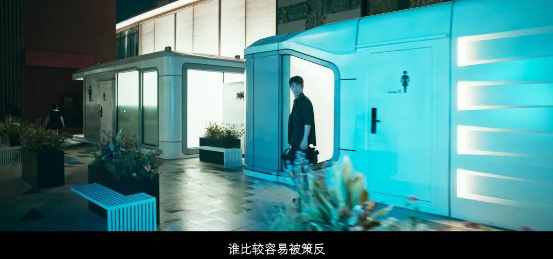 张艺谋标志性的冷冽美学和快速剪辑,在监控画面、暗影对峙中找到了绝佳载体,高楼玻璃幕墙反射的冷光里,我们看到了刀光剑影。