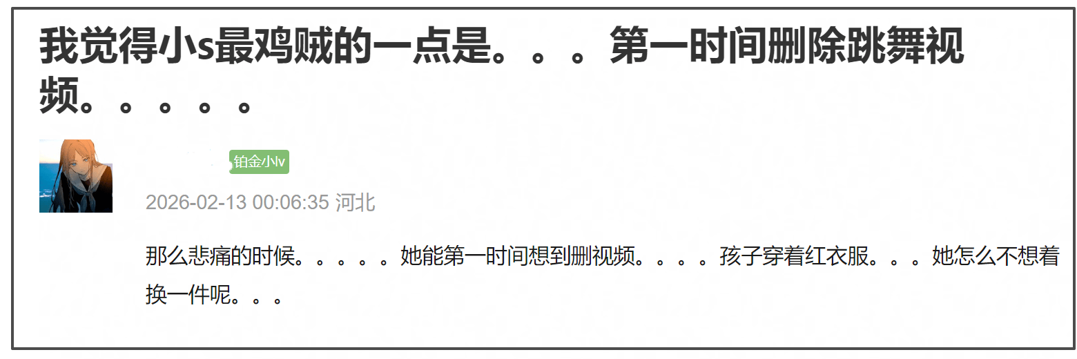 或者说,怎么回应在姐姐病危时,自己带着亲妈跳舞这种行为?再或者说一下为什么有时间第一时间删除,却没时间给大S子女换个衣服,让孩子穿着红色外套回台。