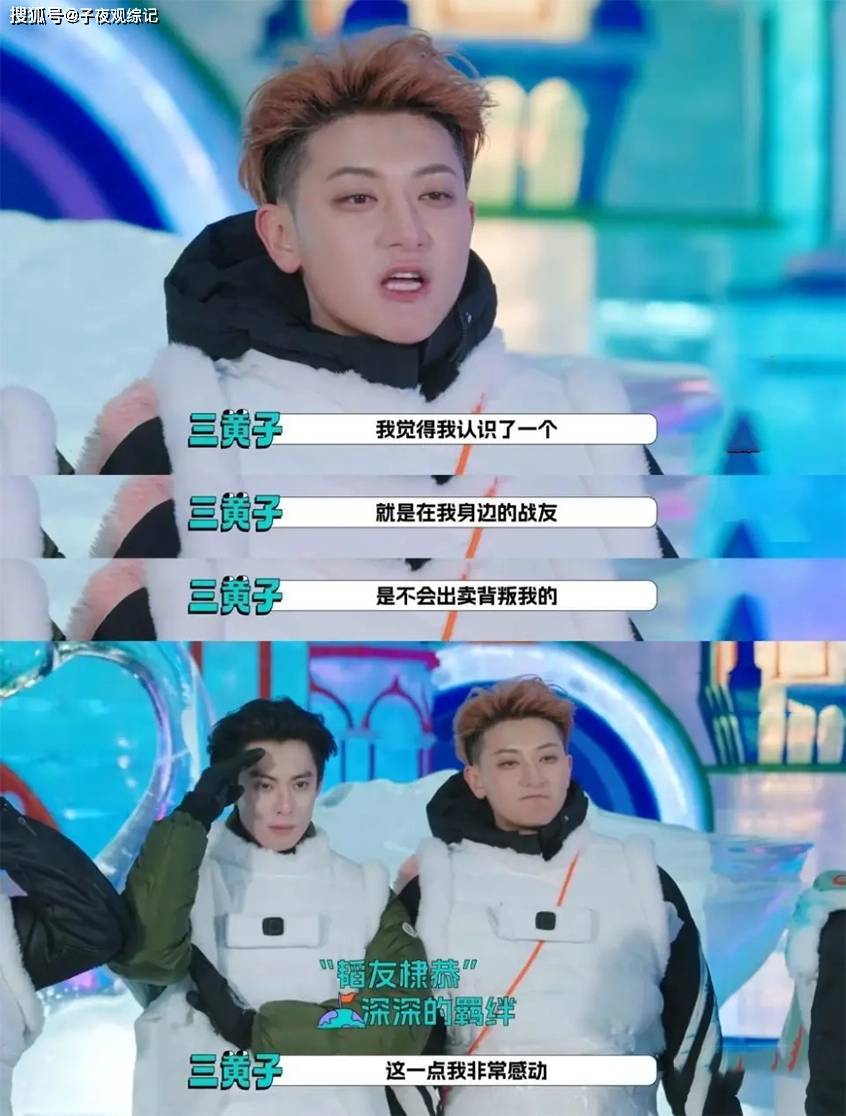 这一期的冰雪大世界雪花数字追击战,让我兴奋不已。原本这场游戏是个人战,但黄子韬和王鹤棣从第一轮就决定结盟,韬毫不犹豫地把自己手中数字最大的雪花递给了棣。这种我有的全给你的做法,比偶像剧男主还要迷人。第二轮规则突然改变,最少数字的人获胜,原本领先的王鹤棣瞬间跌至倒数第一,但黄子韬依旧没有散伙,他们的结盟并没有因为局面变化而打破。 这种兄弟情谊简直堪比神仙,换做普通朋友,早就各自安分守己了。