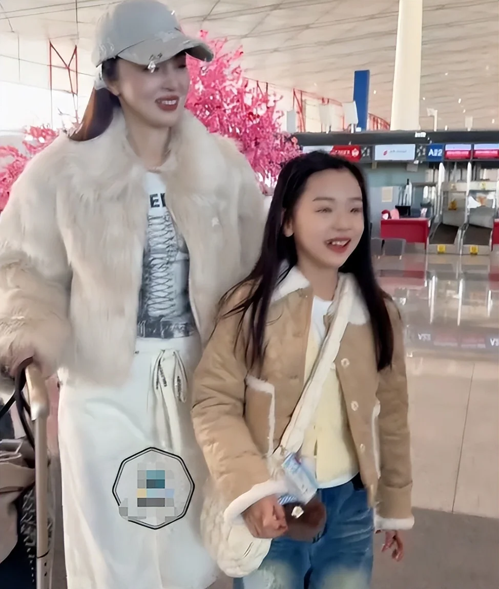 张维伊有事来晚了,她们母女二人先行一步,在机场被很多网友偶遇了,哪里像是妈妈带女儿,分明就是姐妹俩。
