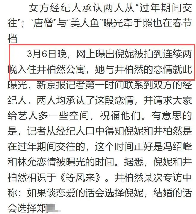 这也就是井柏然所说的下手晚了,心中的女神已经是冯绍峰的了。