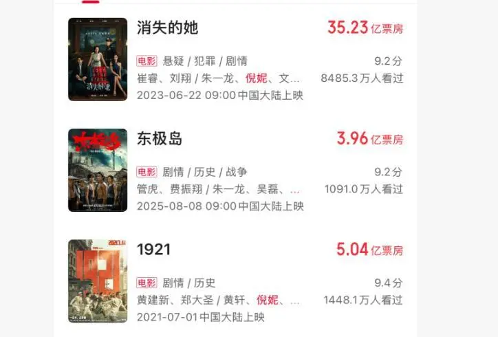 更值得一提的是那部票房高达35.23亿元的《消失的她》。
