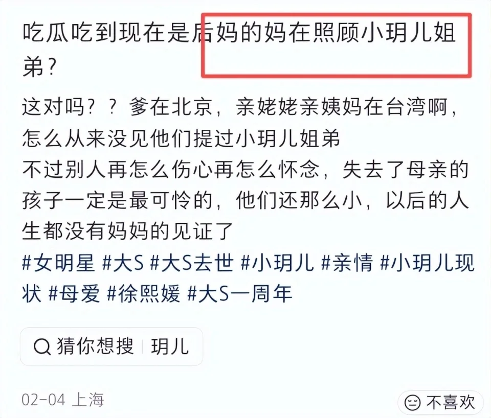 但别忘了,大S那一双还很小的儿女,几乎在这场热搜狂欢中,被彻底边缘了。