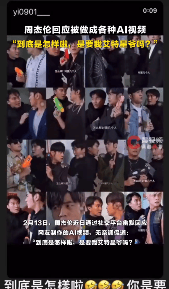 近日,周杰伦通过社交平台幽默回应网友制作的AI视频,无奈调侃道:“到底是怎样啦,是要我艾特星爷吗?”9日,周星驰经纪人陈震宇晒出某平台上用户AI的周星驰影像,询问这些是否属于侵权,呼吁平台监管AI视频。