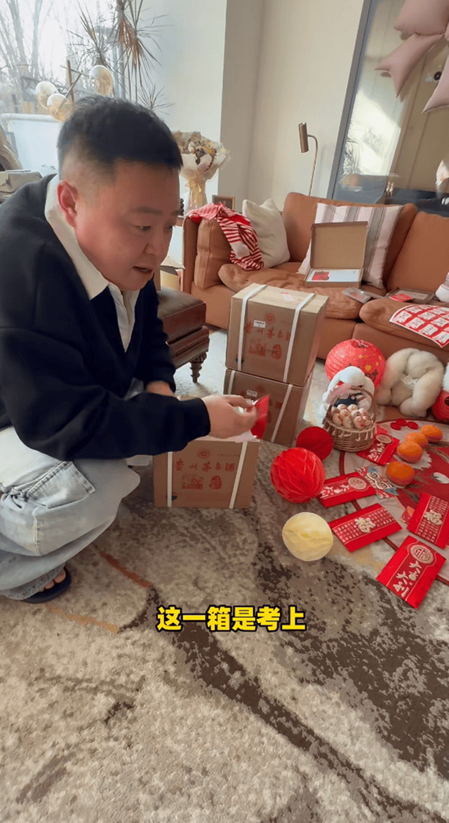 不仅用心将家里布置了一番,对于迎来满月的女儿,阎鹤祥还给自家闺女准备了金镯子和金锁,还封了三箱茅台。对于这些仪式,阎鹤祥表示后面还会有很多很多,在他看来一切都是很有意义的,女儿的到来让他感受到生命的可贵和家庭的幸福。