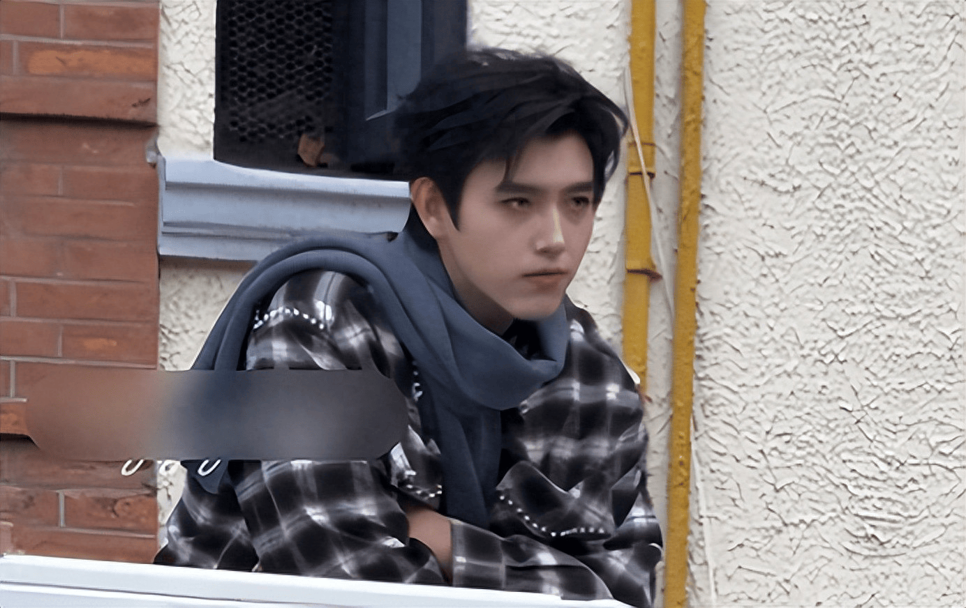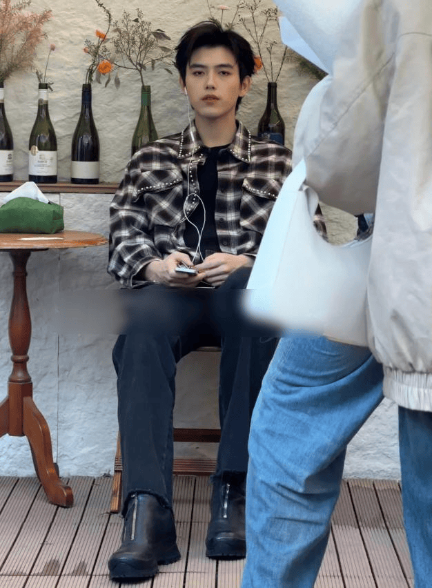 从视频中可以看到,他走路时背挺得很直,身姿高挑而挺拔。那件略微宽松的格子衬衫,并没有让他显得臃肿,反而恰到好处地衬托出他宽阔的肩膀和纤细的腰身,身材比例显得格外优越。他的步伐不疾不徐,偶尔会抬起头看看周围的景象,神情显得非常温和且放松,完全没有镜头前的紧张感,也没有一点明星的架子。他看起来就像一个在街头悠闲散步的普通帅气少年。